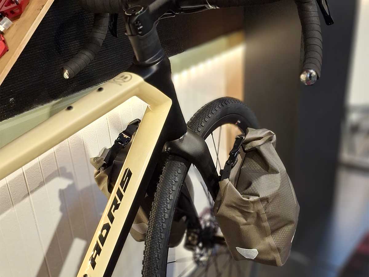 Un gravel all carbone avec de multiples points de fixations pour partir à l'aventure.